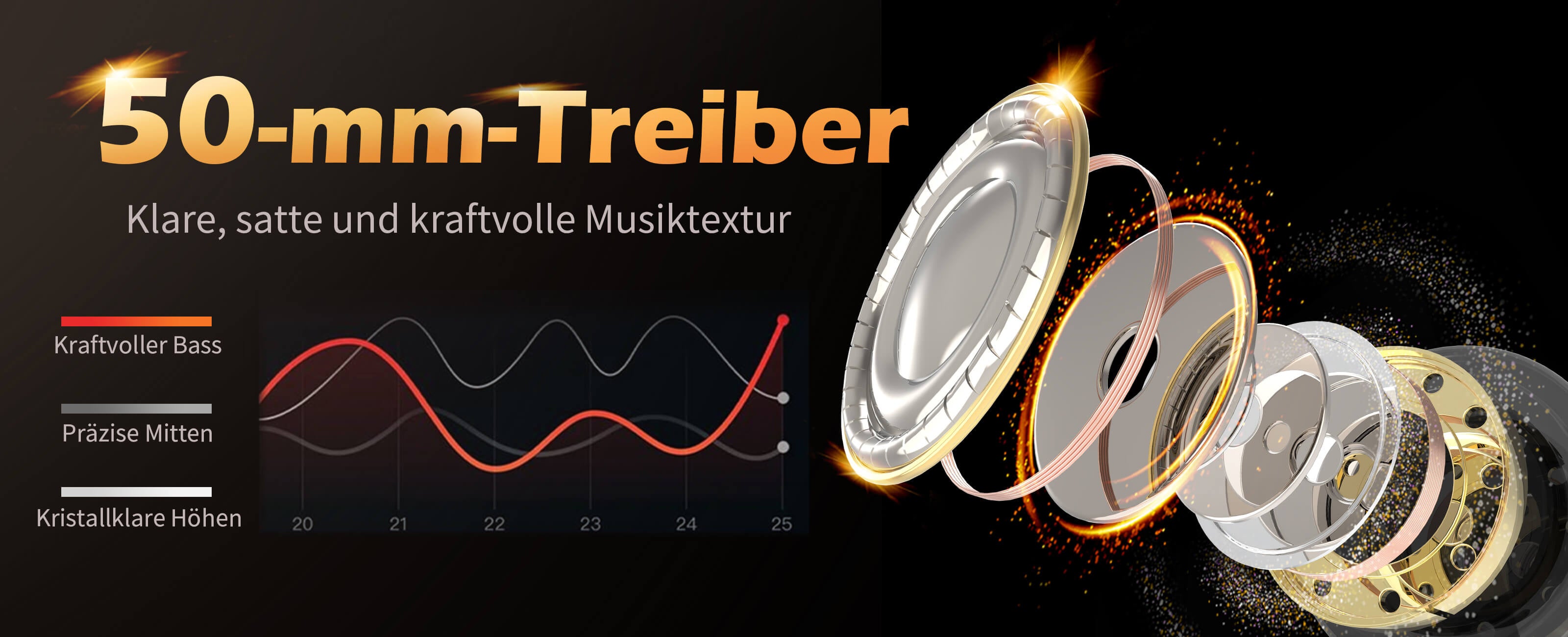 Der Ti660x ist größer als die typischen 30–40-mm-Treibereinheiten und verwendet 50-mm-Treiber, um eine breitere Klangbühne, eine stärkere Wirkung im Niederfrequenzbereich und klarere Details zu bieten und eignet sich sowohl zum Musikhören als auch für professionelles Monitoring.