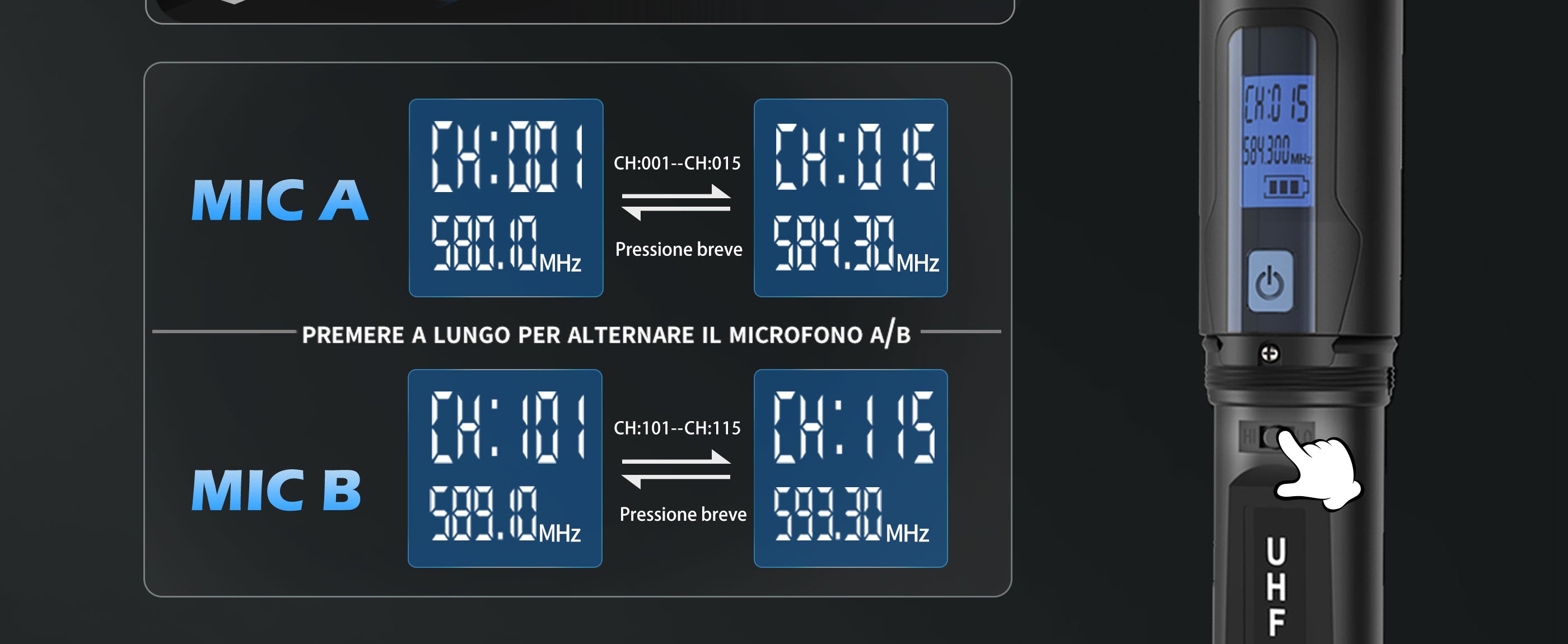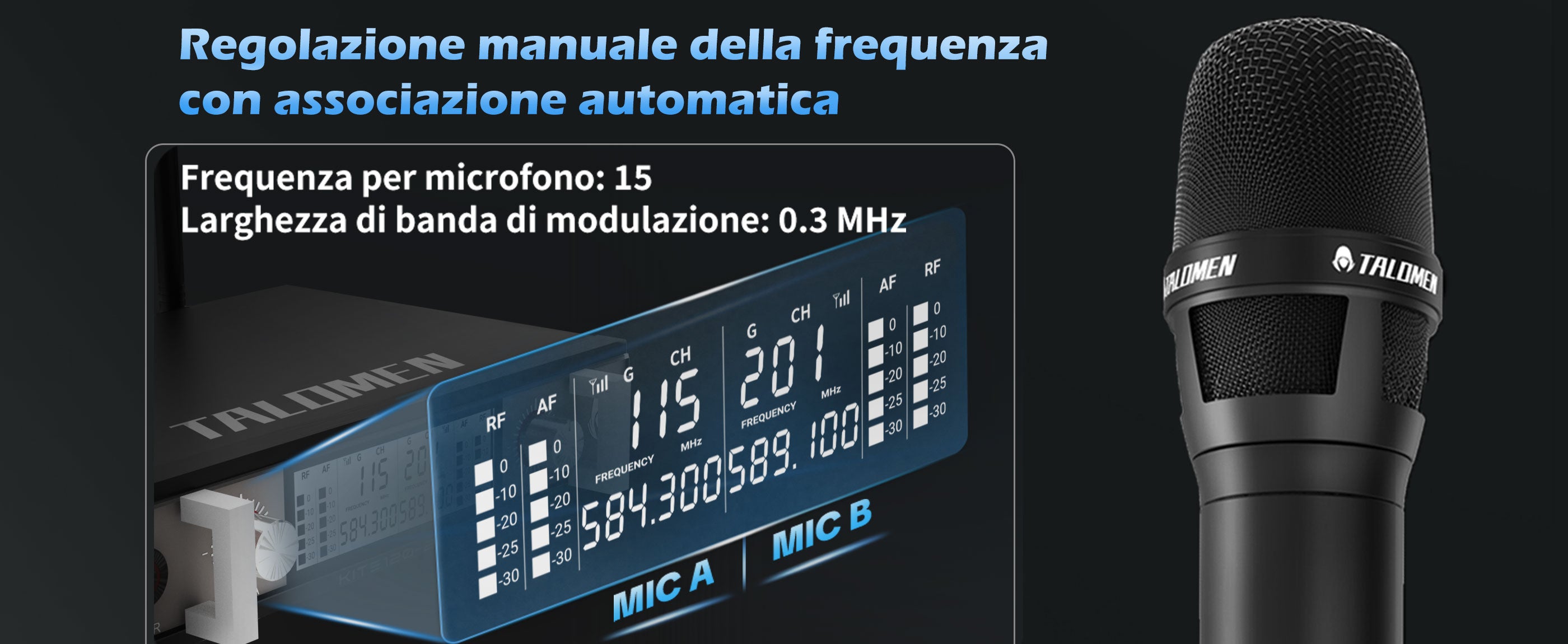 Talomen K120 | Sistema microfonico wireless UHF professionale