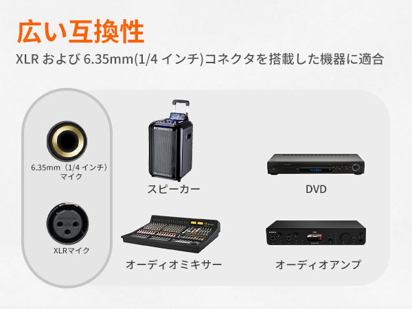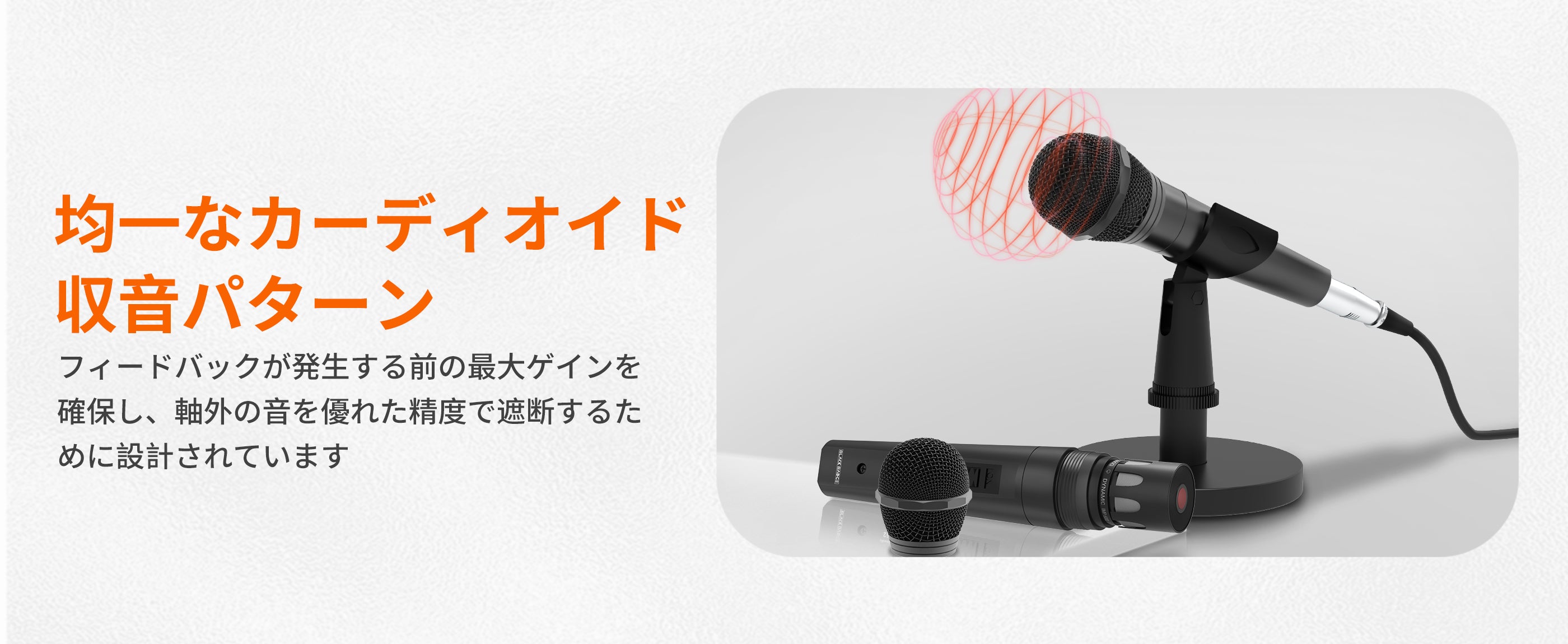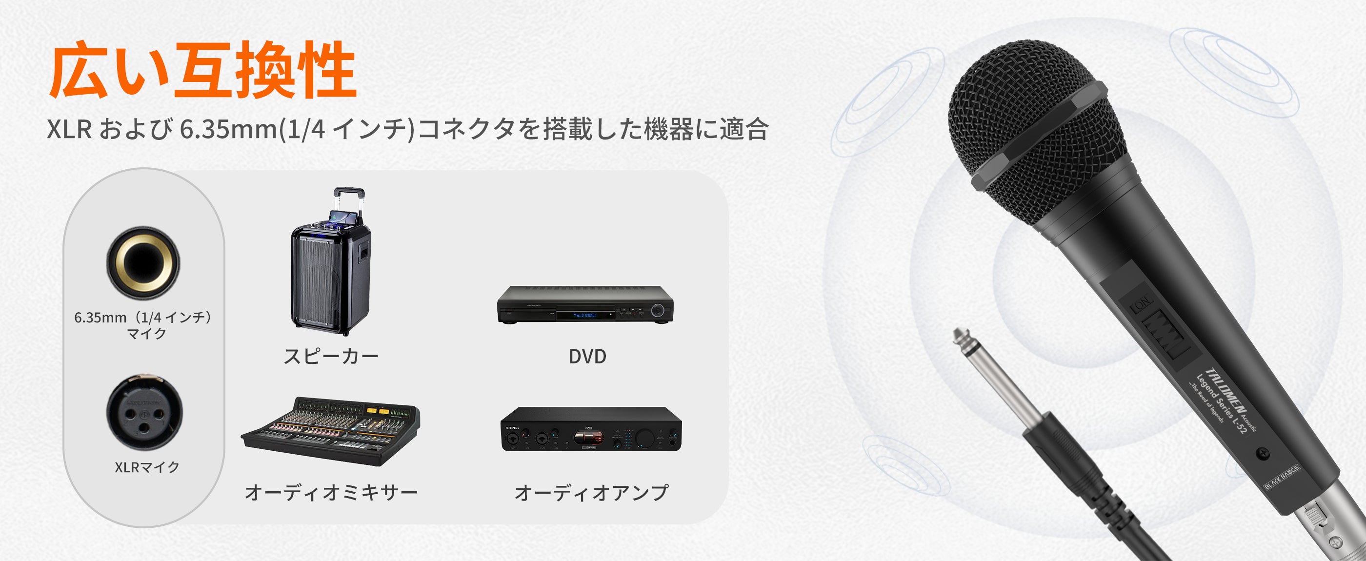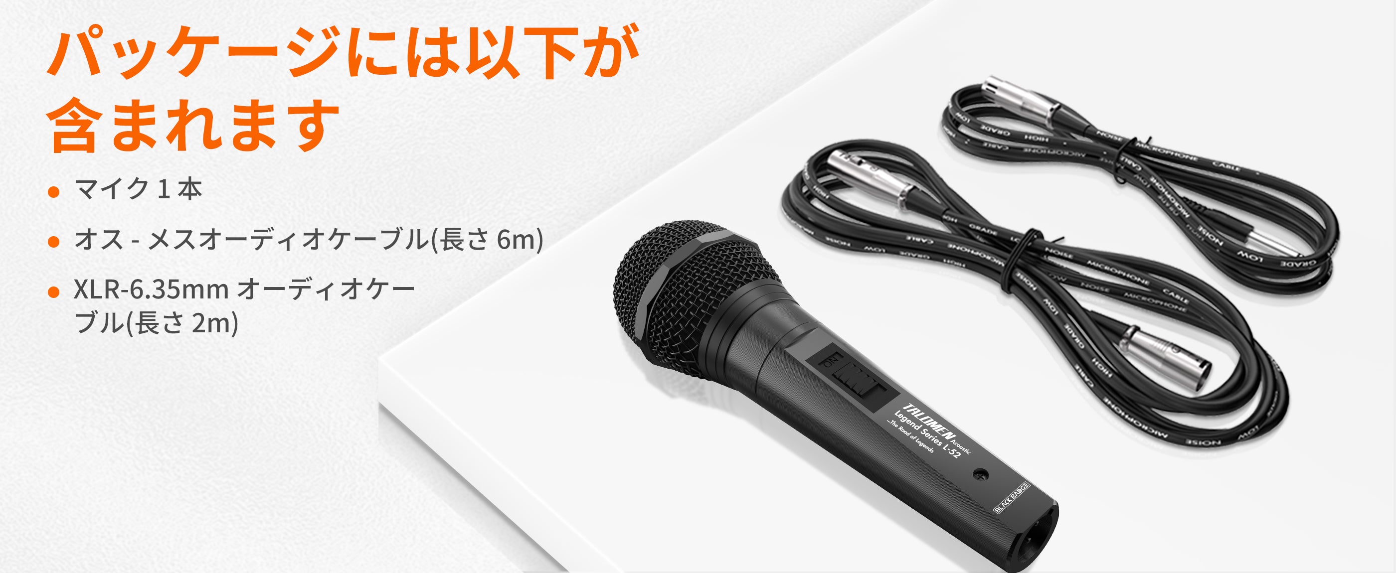 Talomen L52は、2本のオーディオケーブルが付属するスーパーカーディオイド型ダイナミックマイクです。6.35mm入力とXLR入力を備えたあらゆるマイクと互換性があります。ブラックバッジバージョンは、マットブラックのメタル仕上げです。
