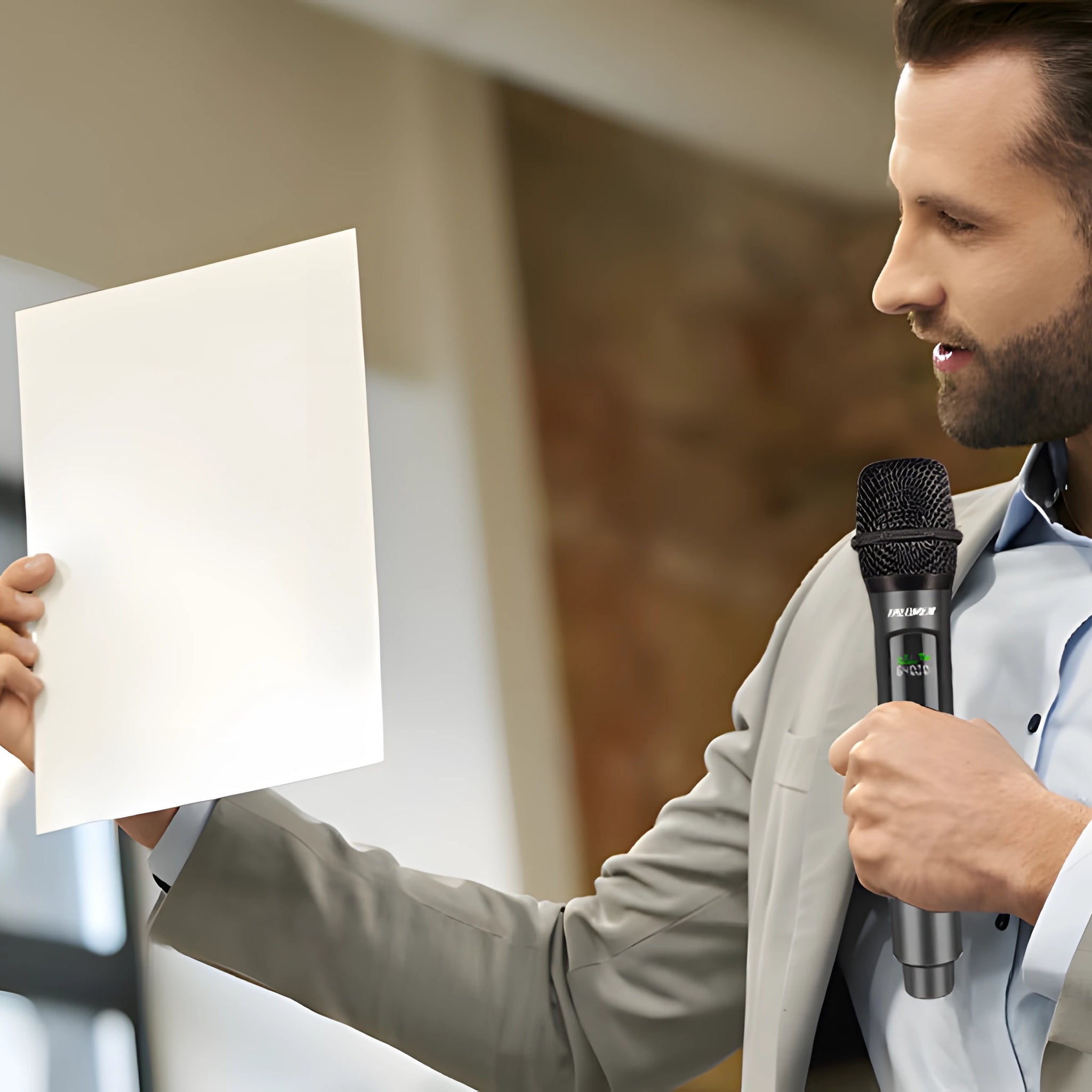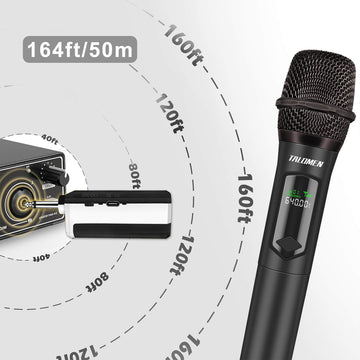 Adopting an innovative chip makes the microphone's signal have 160ft operating range (line of sight) to freely move around during performances.Lower latency, tamper-proof, and a more stable signal without worrying that the sound will be cut off during use. Suitable forindoor and outdoor events such as family karaoke, church, weddings, conferences, speeches and small stage performances.